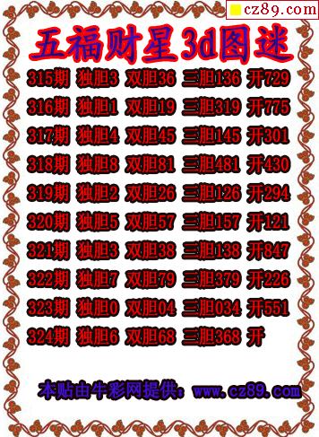 首页 > 福彩3D图谜 > 五福财星三胆2025324期3d图谜(原创)