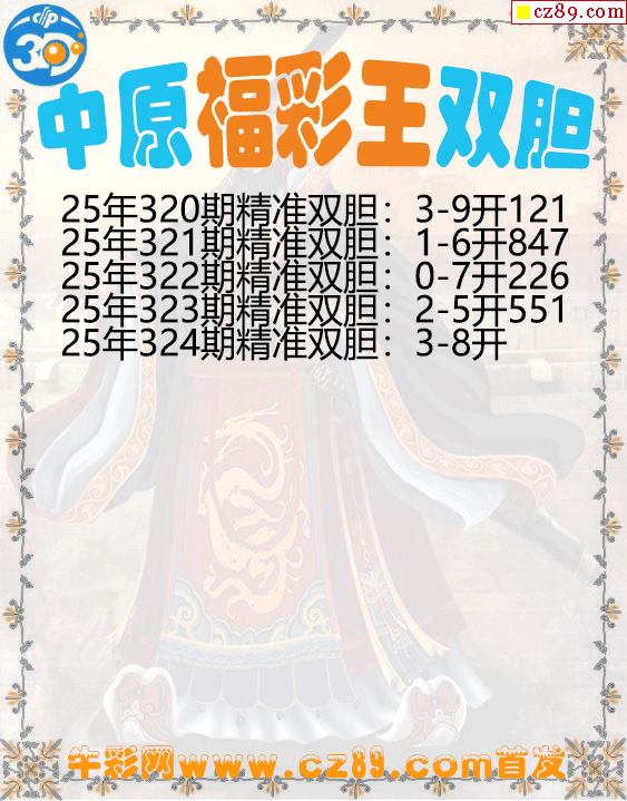 中原福彩王双胆324期3d图谜
