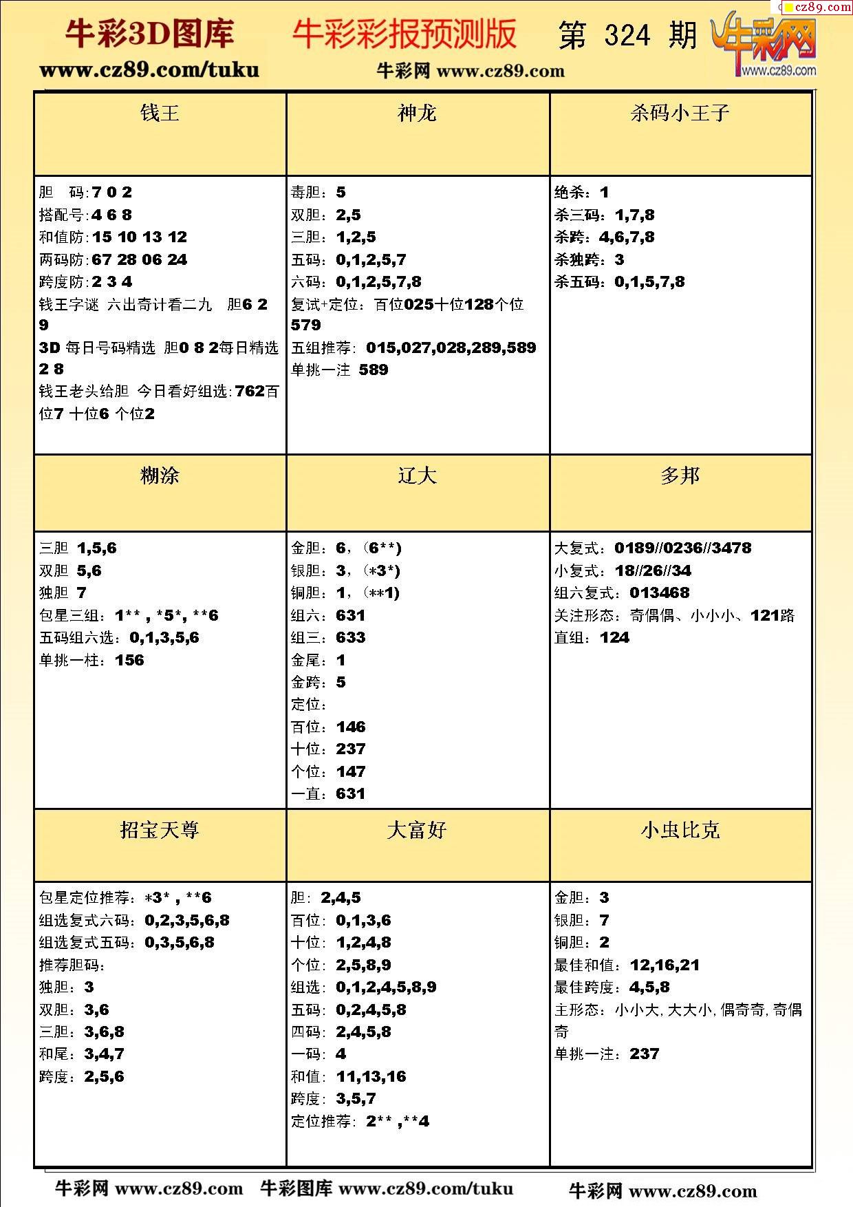 首页 > 福彩3D图谜 > 牛彩版3D预测彩报图25年324期打印版