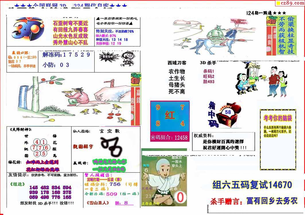 杀手+鑫马快报+字迷汇总25年324期3d图谜