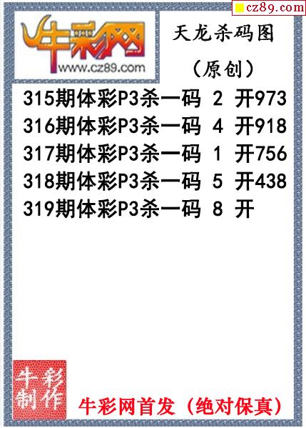 首页 > 排列3图谜 > 天龙杀码319期体彩P3图谜(原创)